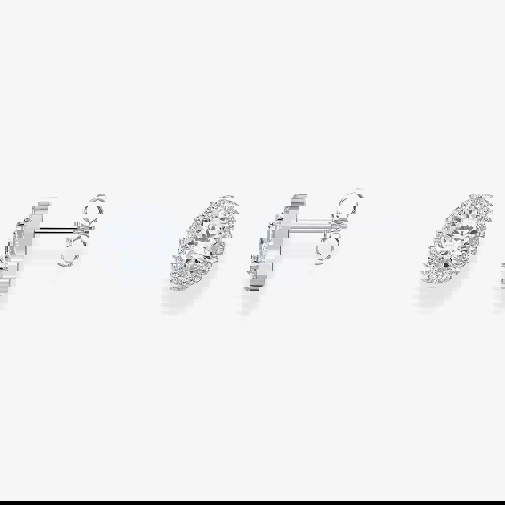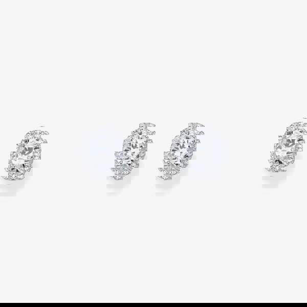 Elegant shimmer: these halo ear studs capture attention with their stunning sparkle. The brilliant-cut white zirconia stone at the centre is encircled by smaller white zirconia stones, amplifying its brilliance in the light. Crafted from recycled silver, these ear studs feature a timeless and sophisticated design that enhances both casual and glamorous outfits.