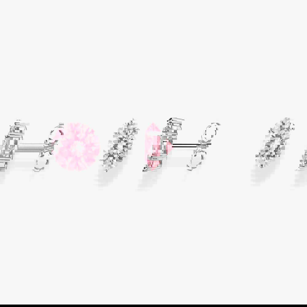 Classic ear jewellery for daily wear: crafted from recycled silver, these ear studs feature a pink zirconia stone with a dazzling brilliant cut, set in a delicate open prong design. They catch the light beautifully, sparkling with intense brilliance. Ideal for enhancing any business, casual, or sophisticated outfit.