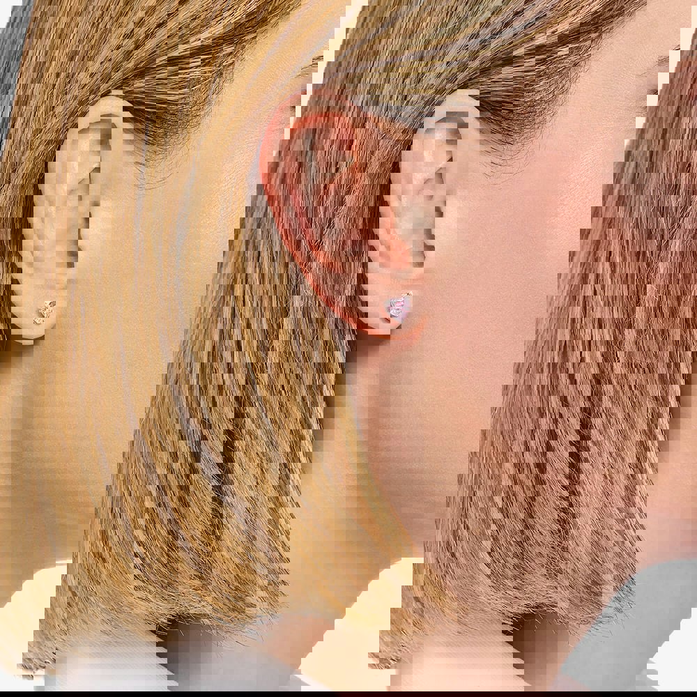 These dazzling ear studs are sure to inspire deep emotions. Crafted from recycled silver and adorned with a large, pink heart-shaped zirconia, they offer a timeless and meaningful design that suits any outfit and occasion. Let these sparkling heart studs serve as a symbol of love—gift them to someone special to brighten their day with a smile.