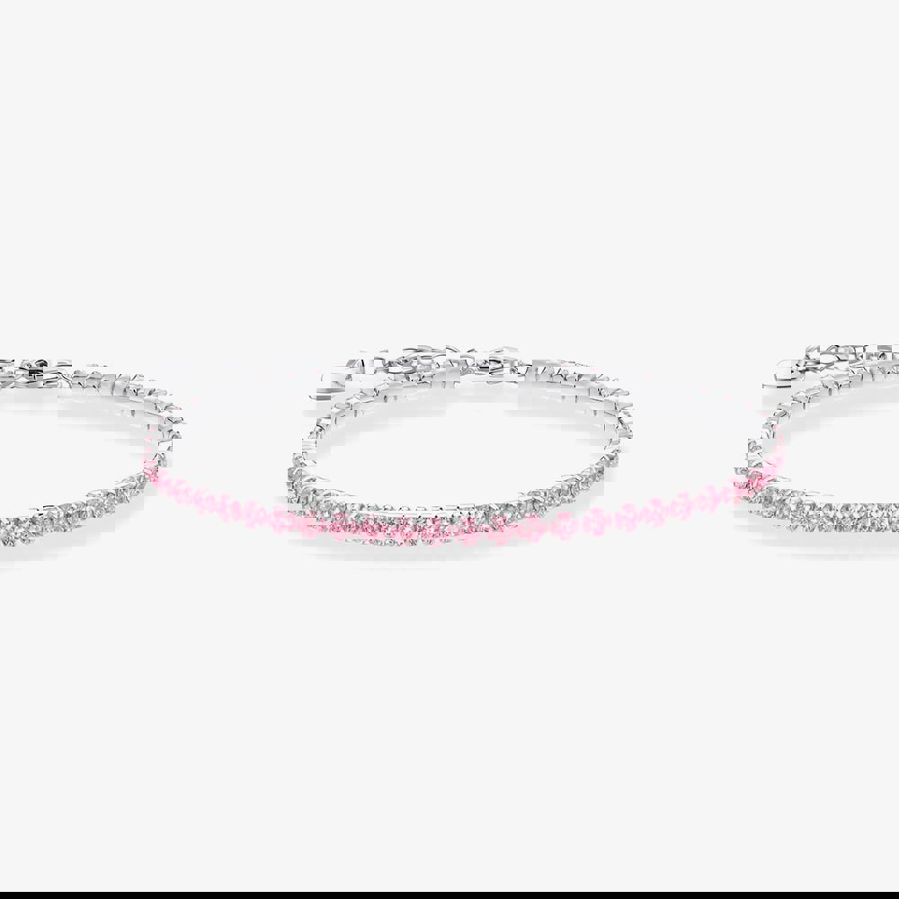 This bracelet became an all-time classic after tennis player Chris Evert popularized it in 1987. Adorned with sparkling stones that gracefully line up around the wrist, this tennis bracelet is crafted from recycled silver and features precisely cut pink zirconia stones in a cabochon style. Wear it as an elegant accessory to elevate any outfit. This tennis bracelet embodies timeless elegance.
