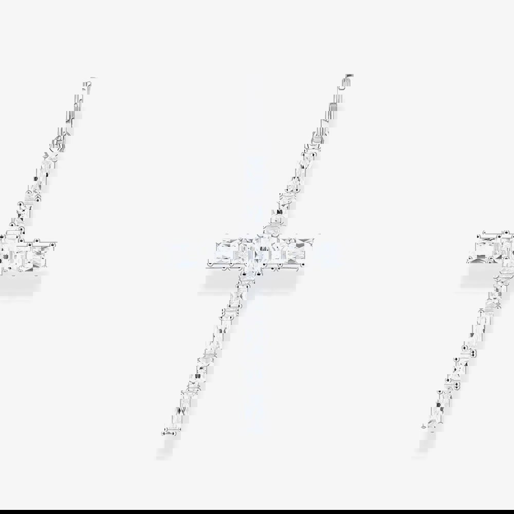 The cross has long been a powerful symbol for countless people across generations, and remains a beloved piece of jewellery. Make this pendant, crafted from recycled silver, your personal companion and a reflection of your own story. Adorned with large, rectangular and square white zirconia stones in octagon and princess cuts, this pendant sparkles brilliantly in the light. Its large eyelet, engraved with the THOMAS SABO lettering, allows for versatile pairing with a necklace of your choice.