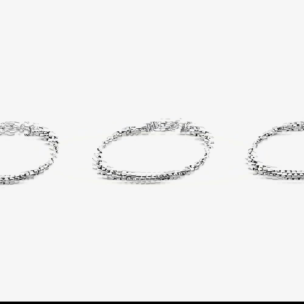 Make a bold statement with the THOMAS SABO Venezia Bracelet, crafted from blackened 925 Sterling silver. Its 3 mm box chain and secure lobster clasp combine durability with sleek design, making it a versatile accessory that works perfectly alone or layered for a contemporary, personalised look.