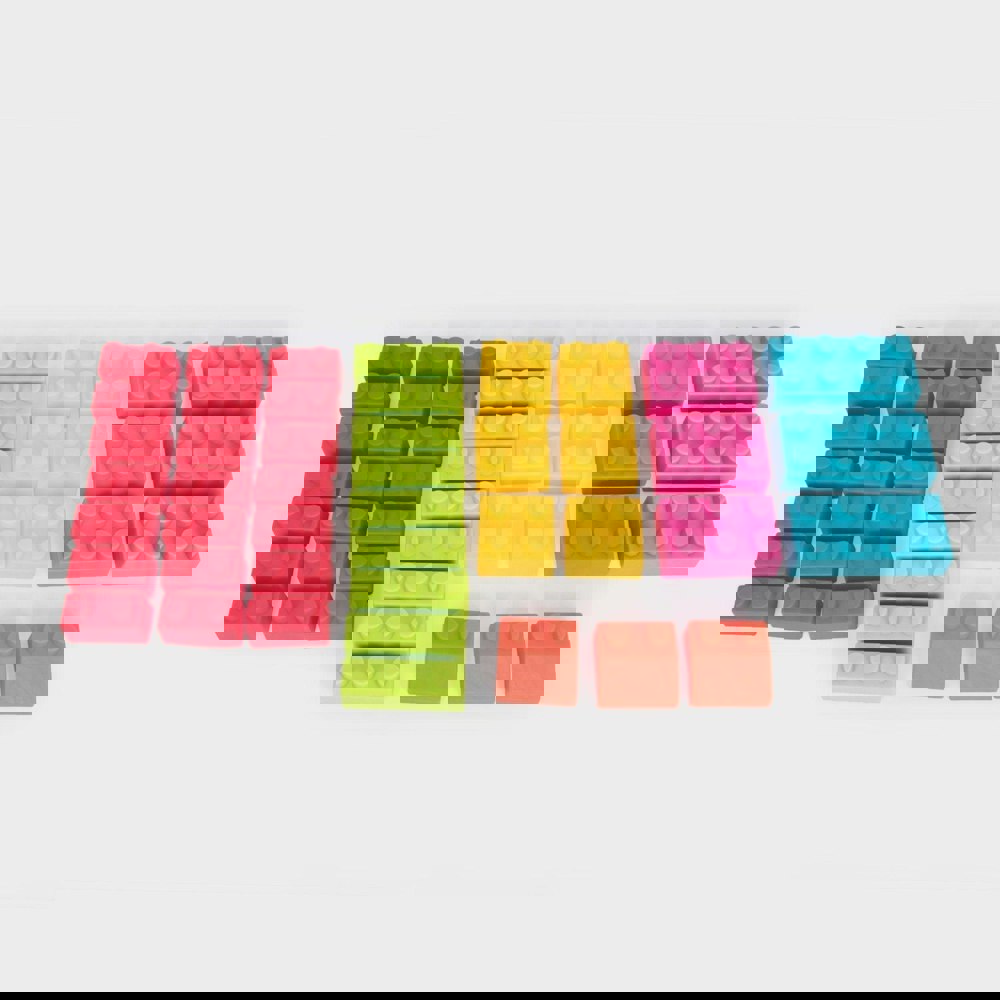 Set includes: 45 mixed shape bricks in 6 colours (red, green, yellow, pink, turquoise, orange) supplied in a convenient storage bag.