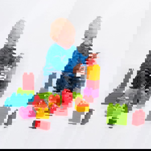 The soft, flexible building bricks are safe and easy to clean making them ideal for your child to explore their creative imagination and build impressive towers and structures.