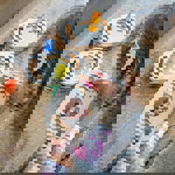 These chunky wooden frames each hold an acrylic mirror in fun shapes—hexagon, heart, and flower—designed to spark curiosity and imaginative play.