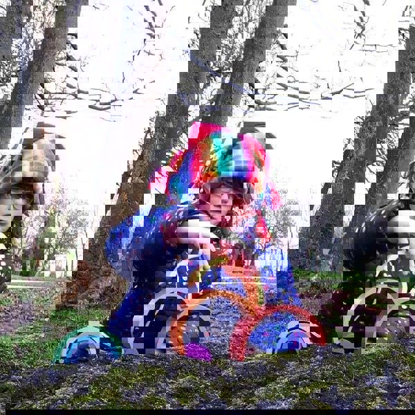 Our Rainbow Architect Arches are made from beautiful smooth solid beechwood with a natural woodgrain finish in the seven different colours of the rainbow. The arches nest together as a set with the inner block being a solid 3D semicircle. This shape set will allow your child to unlock their creativity and innovation.