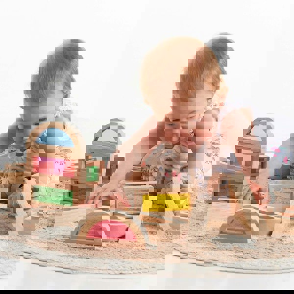 tickit® Rainbow Blocks are different rubberwood shapes with colourful transparent acrylic centre. The transparency of the acrylic allows light to pass through and create a visually stunning effect to captivate your child's imagination. Ideal for learning about shapes, colour mixing or simple block building and are lovely used on a light panel. The blocks are the same size as our Mirror Block Set which can be used in combination with this set.