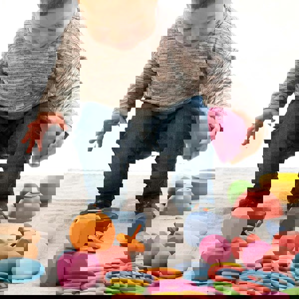 Perfect for your child to use their imagination during creative play, build on construction skills, improve counting, sorting, stacking and sequencing skills and learn about colour and pattern-making. Combine with other sets in the tickit® Rainbow Wooden range, such as our Rainbow Architect Set for extra variety and fun. Great to combine with any of our natural rainbow wooden play sets to help your child discover and explore the world around them.