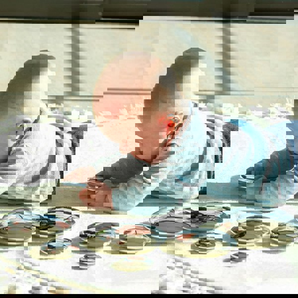 tickit® Sensory Steel Silver Buttons are tactile and reflective and allow your child to create fantastic and fun wobbly stacking towers. The seven giant silver buttons have a smooth silvery mirrored surface and are graduated in size from 5cm to 14cm diameter discs.