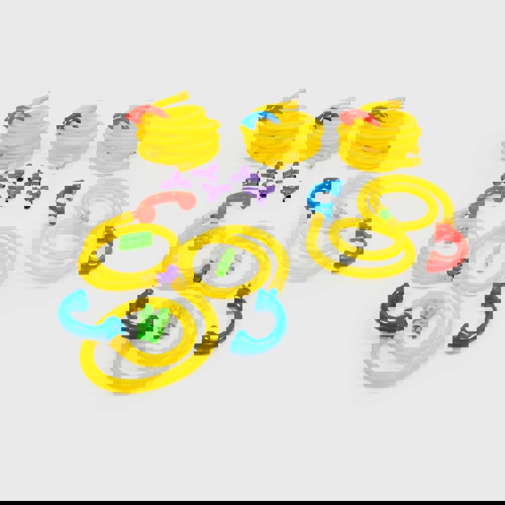 Part of our best-selling and award-winning Talking Tubes range, the tickit® Talking Tubes Telephone Exchange allows your child to create an ultimate telecommunications system! It can be used both indoors and outdoors to develop your child's communication and interpersonal skills. Strong, hollow, flexible yellow tubing with handsets that plug into the ends allows children to pass a message to each other across multiple networks and distances; between different rooms, in an outdoor space or between an indoor and outdoor environment. Your child will have so much fun talking to their friends through this innovative air powered device and learning how sound travels. The tubes all have rubber ends so the handsets and connectors can easily be pushed into place and pulled apart to create new configurations. Tubes can be buried underground to create secret communication devices.