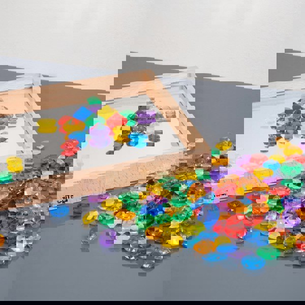 Explore the loot of a pirate's treasure chest with our tickit® Translucent Colour Jewels. Colourful and detailed, our jewel shapes are ideal for counting, sorting, pattern making or having fun with maths activities. Your child can add, subtract, divide or multiply red rubies, orange topaz, yellow diamonds, green emeralds, blue sapphires or purple amethysts. The translucent properties make them great for use with a light panel to capture your child's imagination and explore colours and the tactile markings on each shape.
