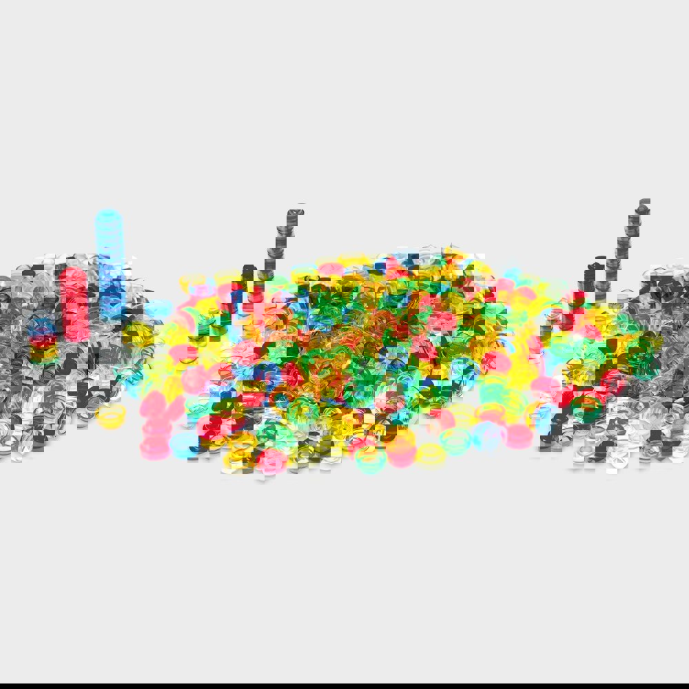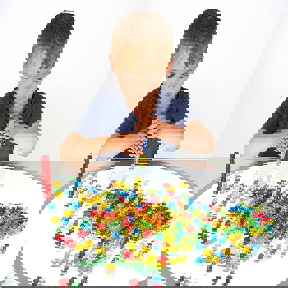 Perfect for use on a light panel where structures look even more impressive with the light shining through the colourful counters! Ideal for developing fine motor skills through construction, stacking, grouping, patterns and sequencing and learning about colour and colour mixing.