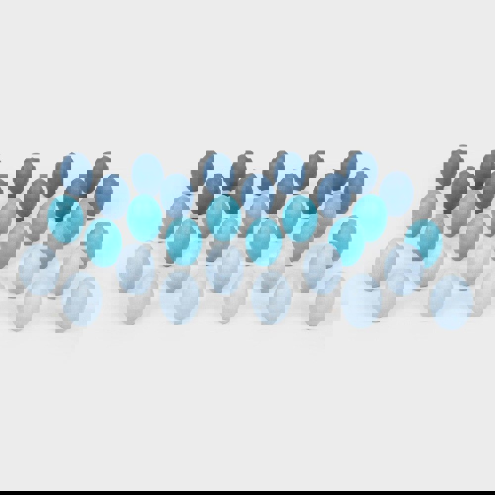 Set includes: 30 wooden egglets in 3 shades of blue.