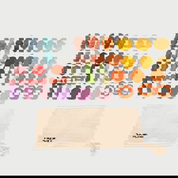 The attractive natural woodgrain can be seen through the colour shade which freely allows for open interpretation, with no 'correct' way of using these objects; the items can be explored and investigated and used in your child's own creative ideas. Perfect for engaging logical thought, stimulating discovery and creativity, developing hand-eye co-ordination and improving fine motor skills. The set can be used to create pictures and stories, practise counting and sorting and designing patterns and sequences.