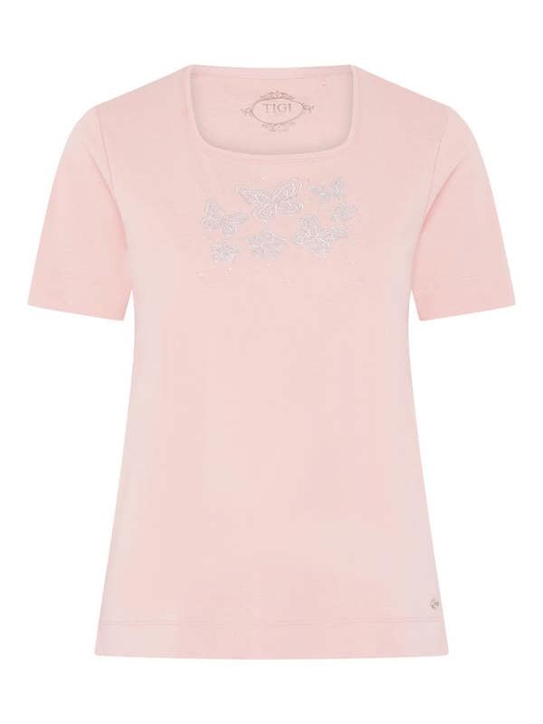 The beautifully embellished butterfly and floral jersey top, is the perfect addition to your wardrobe this season. It has a soft square neck and an easy fit, cut in soft touch poly/cotton blend, and finished with short sleeves.