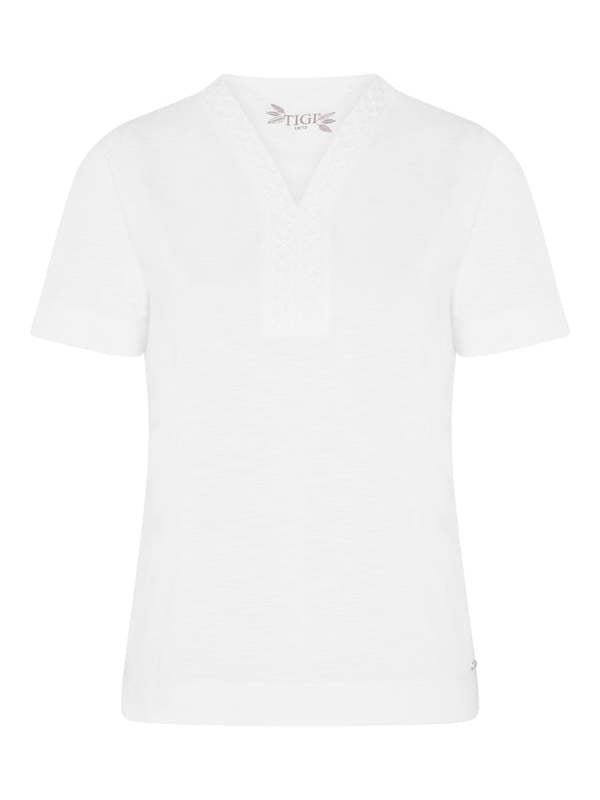 The new cotton blend jersey top combines a classic v neck line and a corded embroidered detail for a stylish, modern update on the short-sleeve top. It's perfect for all occasions when something special is needed. A truly versatile wardrobe addition.