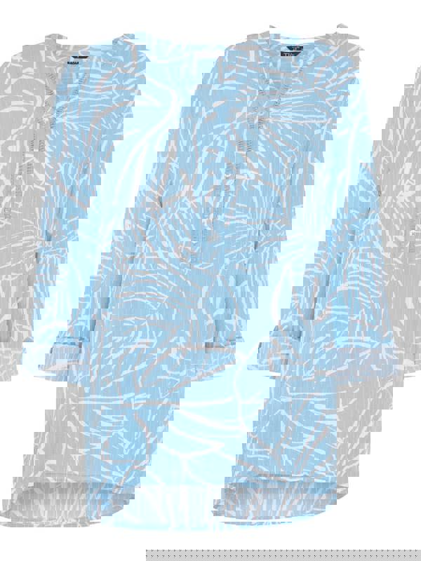 Our notch neck style in 100% viscose slub dobby fabric, is a beautiful addition to your wardrobe. With a notch neckline, tonal ladder trim at the front placket, and 3 quarter length sleeves that are adjustable with its button tab at the cuff.