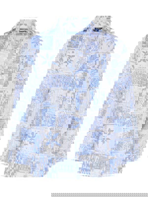 This beautiful 3/4 tab sleeved, double weave Cotton shirt has a sea-breeze fresh all over print design. Made from 100% cotton, it is cool and comfortable to wear and has a stylish collared notch neckline. A summer season must have.