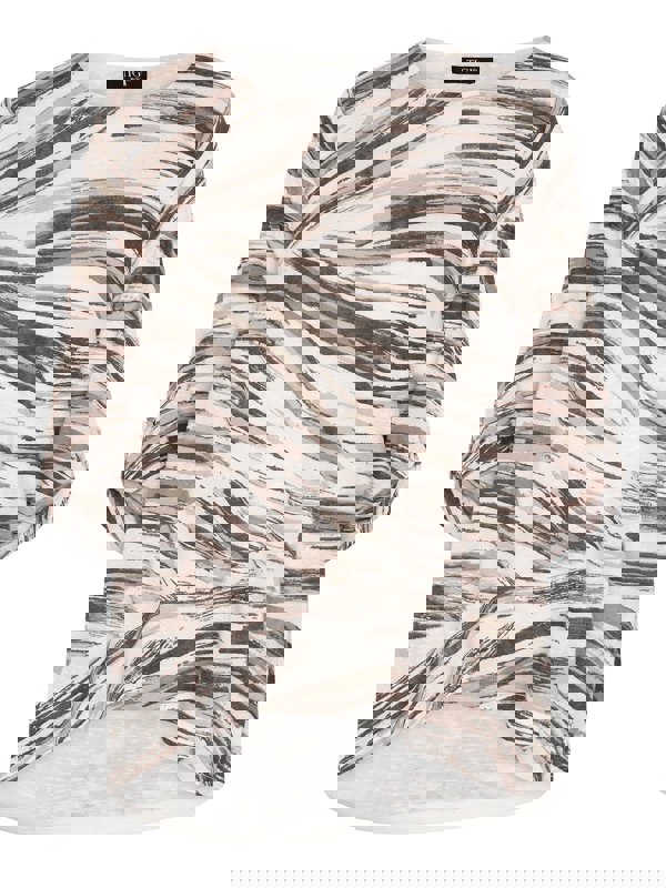 Featuring a double layer design with a split back and 3/4 length sleeves for a timeless, modern look. Made from a light slub polyester jersey fabric ,this top is both comfortable and stylish. Its brushstroke print will make this a go to favourite.