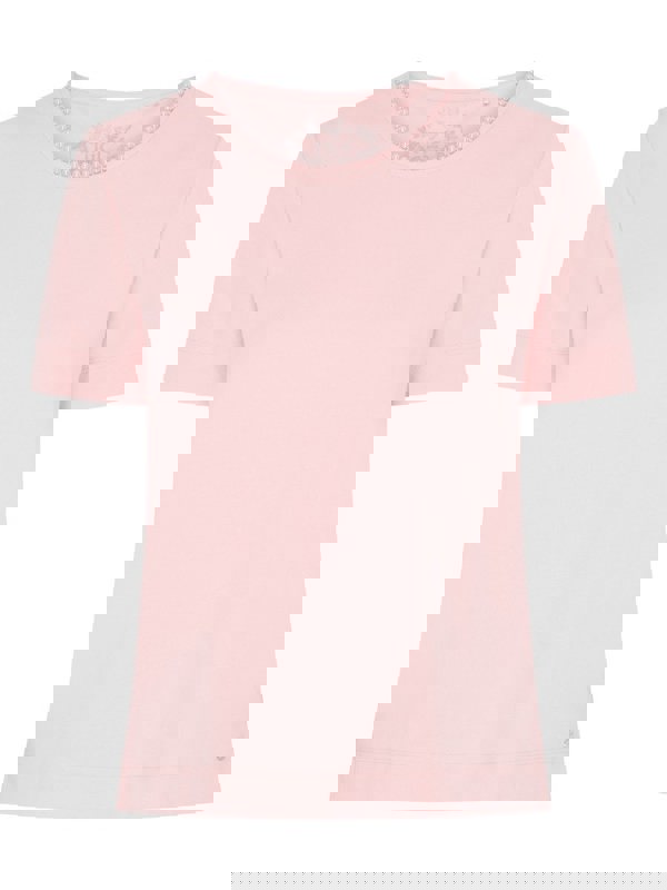 Our sell-out style has been updated for the new season in a flattering rose colour. The top features short sleeves, a beautifully curated pearl beaded neck trim. Cut in poly cotton jersey fabric, keeping you stylish throughout the season's.