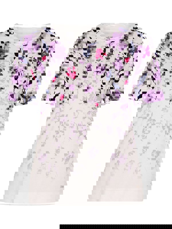The shoulder floral print of this top steals the show. Made in cotton/poly blend jersey, and is designed with an embellished pleated round neck, short sleeves, combining comfort and style. It's a must-have for your everyday wardrobe.