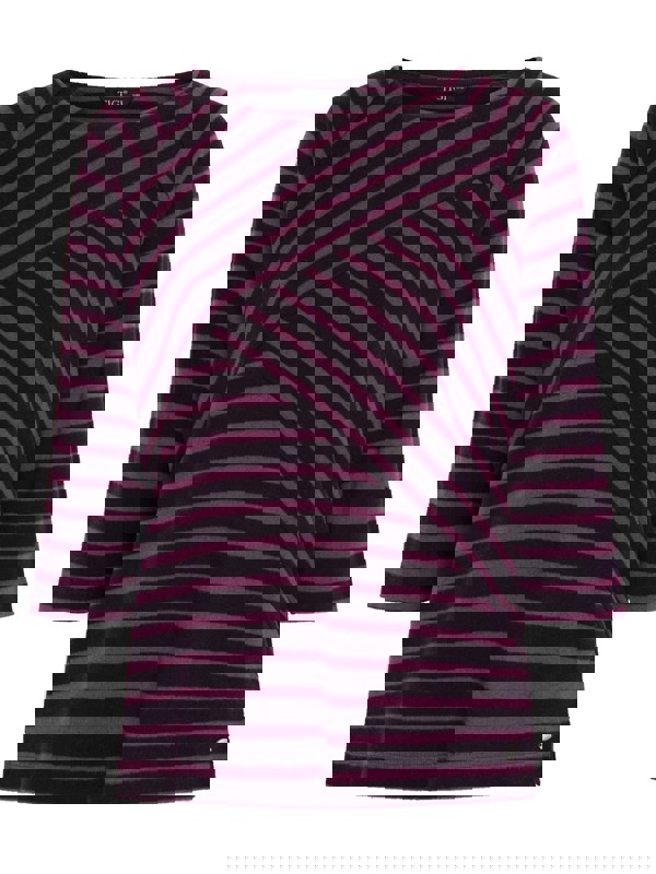 A staple top, with a twist. Our round neck top features a stripe contrast panel design across this top. In a soft yet striking colour combination of tonal hibiscus and blackcurrant. This is soon to become a wardrobe favourite.