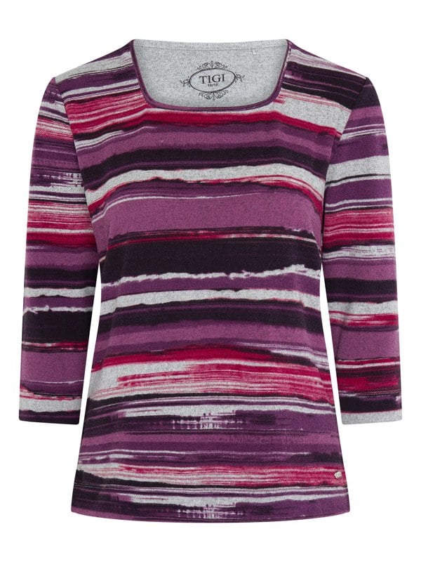 The Painted Stripe print top, with its Soft Square Neck, is a stylish and versatile addition to any wardrobe. Crafted from a soft, brushed jersey fabric, 3/4 length sleeves and side slits for comfort.