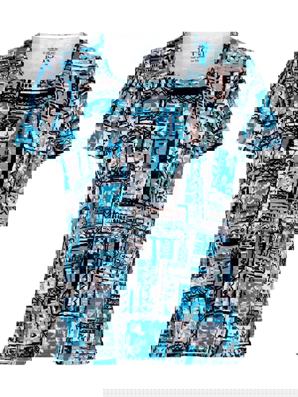 Bring a playful touch to your summer wardrobe looks with this, artistically created patchwork pattern top. It's designed in a regular fit with short sleeves and a soft square neckline. Wear with our cropped bengalines for a perfect summer out-fit.