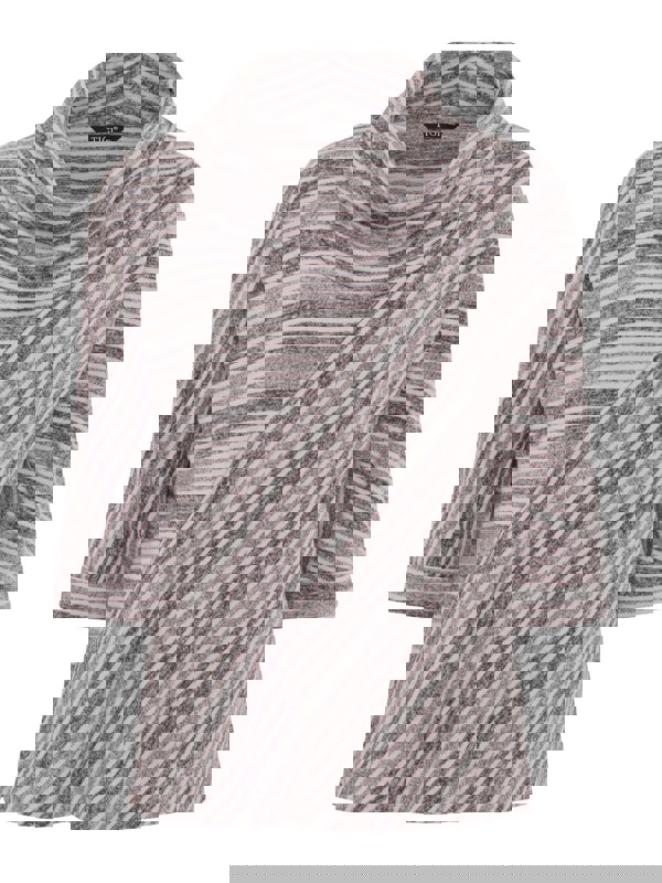 Stand out in the crowd with our rose melange stripe print top. Showcases a cross seam panel at the front, Cowl-neck, three quarter batwing sleeves with rolled up cuff and metal tab at the hem.