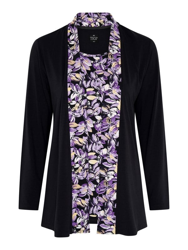 Make a statement with our beautiful mock 2 in 1 shawl collar cardigan with inset top. Featuring a stunning all over tonal brushstroke floral print to its shawl collar and inner top. Designed to perfection in a super-soft, viscose elastane jersey.