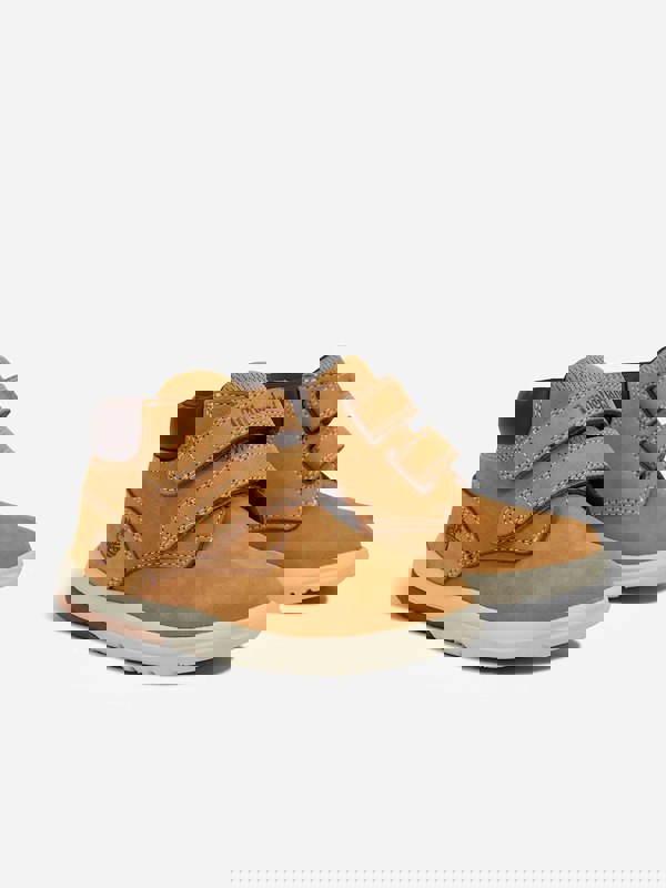 Introducing the Timberland Boys Toddle Tracks Mid Hook & Loop Boots in Wheat —a quintessential addition to your boy's wardrobe, exuding both elegance and rugged practicality for all seasons. These features distinguish it: