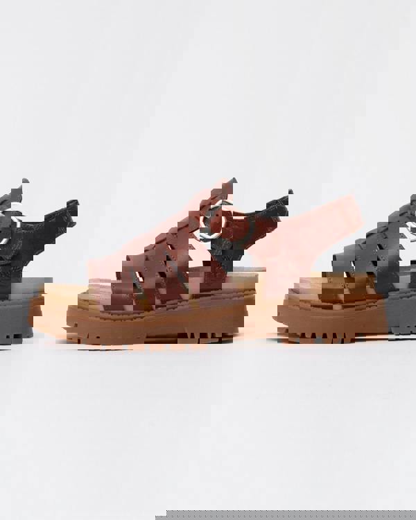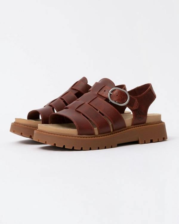 Timberland brings a boot-inspired edge to warm-weather dressing with the Clairemont Way women’s fisherman sandals. Finished in dark red full-grain leather, this pair balances a structured look with considered underfoot components for everyday wear. An adjustable buckle closure secures the fit, while a synthetic suede lining adds a soft touch against the foot.