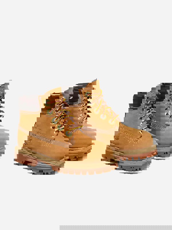 Timberland kids 6 inch lace-up waterproof boots come in beige for a clean, versatile look. The waterproof build helps keep feet dry in wet weather, while the nubuck leather material adds a premium finish. A lace-up fastening completes the classic boot shape, making this pair a practical option for everyday wear.