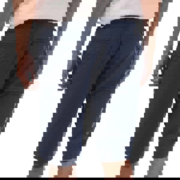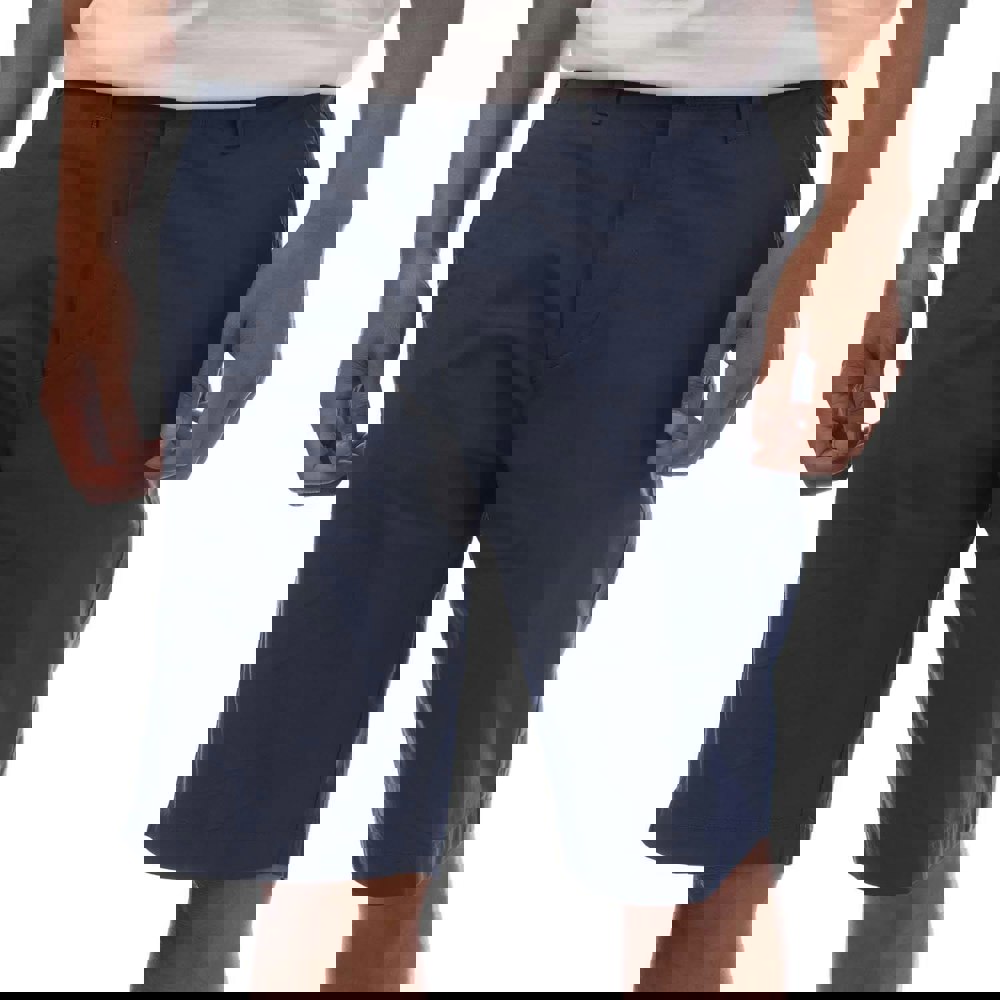 These Timberland Topsfield chino shorts are made from stretch poplin with a plain finish in dark blue. The cotton-rich blend includes elastane for added stretch, while the clean design is finished with a logo badge and woven label. A button fastening and zip fly keep the front neat, making them a practical option for everyday wear.