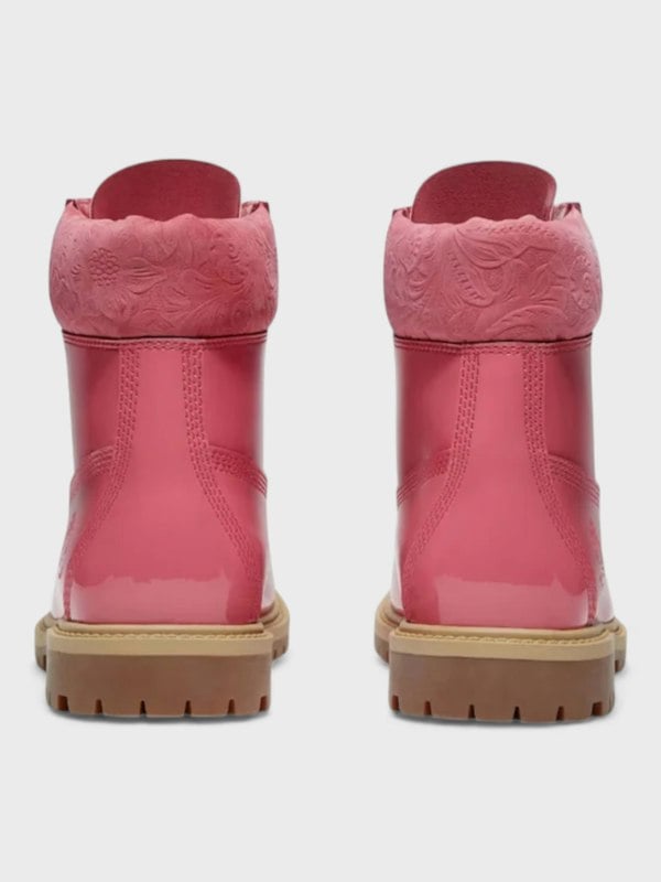 Timberland's iconic 6-inch silhouette arrives in a striking pink finish, combining heritage craftsmanship with contemporary style.