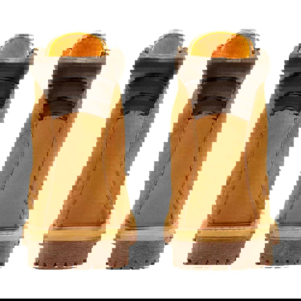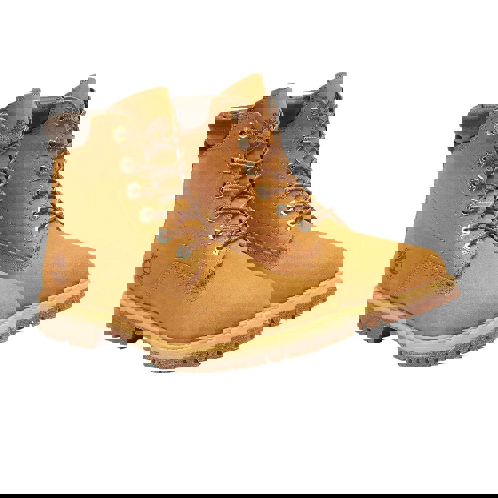 These Timberland women’s ankle boots come in brown nubuck leather with a lace-up fastening through six eyelets. The round toe and flat profile create a clean, practical shape, finished with a logo detail. A padded collar adds extra structure around the ankle.