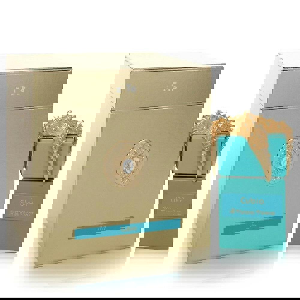 Cubia wears with an elegant, statement-making character that suits dressed-up occasions and nights out, while still feeling versatile enough for confident everyday wear. The presentation is equally striking, housed in a turquoise glass bottle and finished with a gold, starfish-shaped cap for a sculptural touch on the dressing table.