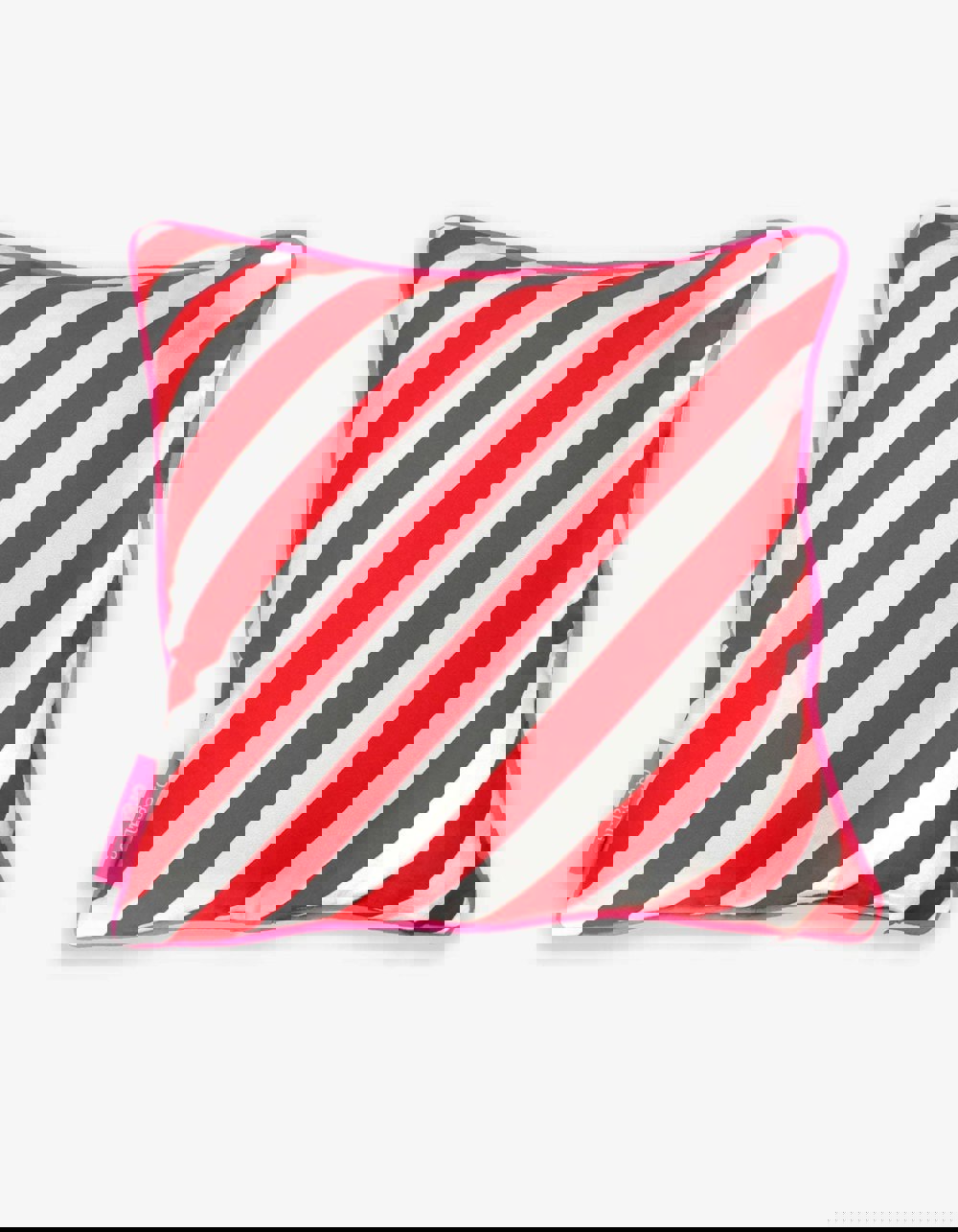 Say it with hearts! This brilliantly colourful cushion is super soft with contrasting pink piping and stripy reverse print. Perfect for big and little kids alike! And in the eventuality of any messy mishaps, the cover simply zips off which can then be bunged in the wash.