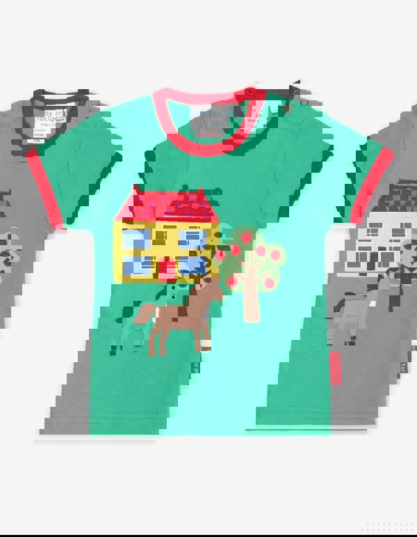 There are lots of things to see and do down on the farm. While our pony pal is patiently waiting for a juicy apple, our little duck family are off for a walk. Little ones will love making up stories from this applique organic cotton T-shirt. And, to make changing time that little bit easier, we've added neck poppers on the smaller sizes. Team with a pair of our organic shorts for easy, breezy summer style. Love this fun farmyard style? Check out our full farming collection of organic childrenswear online at Toby Tiger.