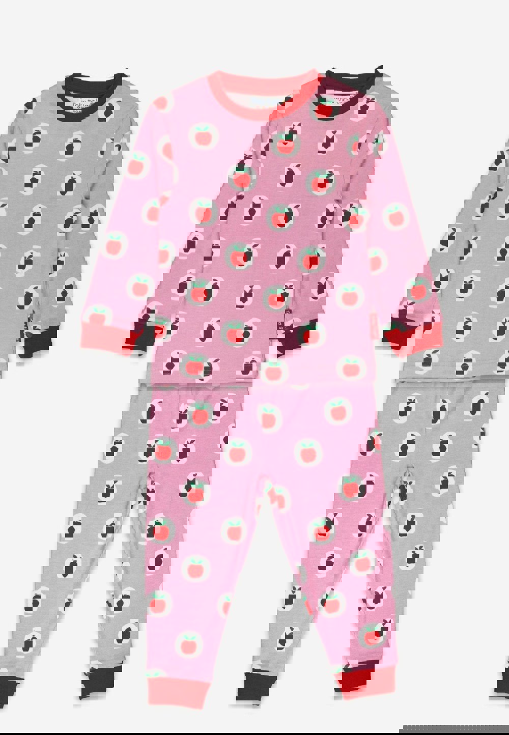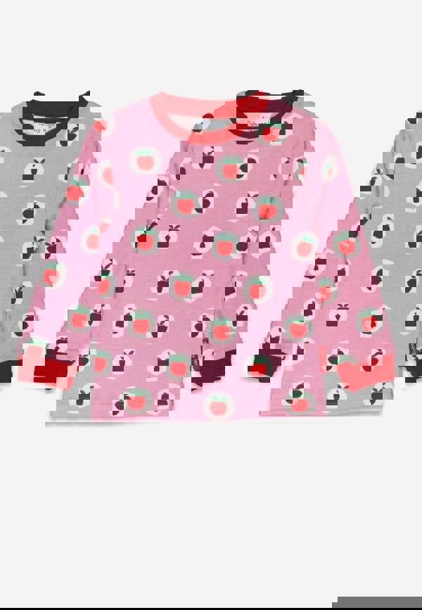 Snuggle up in style with our Organic Apple Print Pyjamas, the perfect blend of comfort and charm! Crafted from soft, sustainable organic materials, these pink pyjamas feature adorable red apple prints set inside white circles for a playful, fresh look.