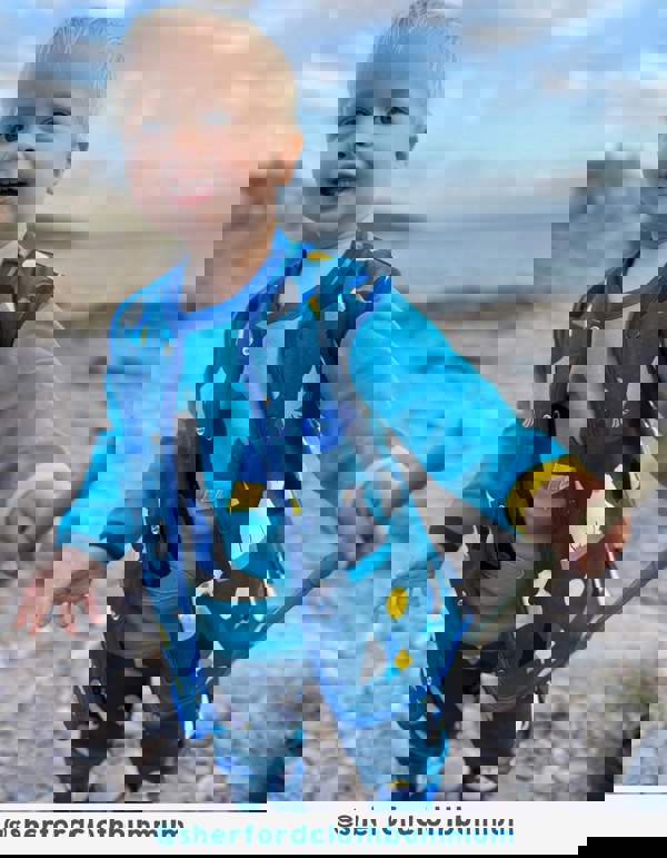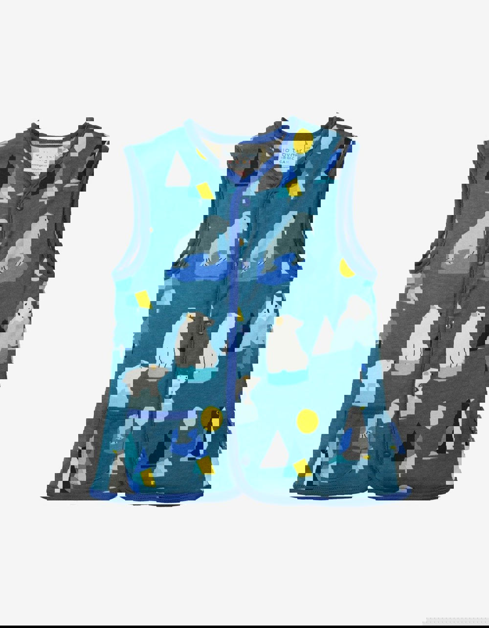 Transform your little one's style with this playful, reversible gilet featuring a blue print of delightful penguins, walruses and polar bears against an icy landscape of icebergs and mountains. It's designed with a cosy fleece lining, sleeveless fit and a single pocket fastened with popper buttons. No matter the adventure, they'll stay warm, dry and stylish in this one-of-a-kind gilet - perfect for chilly days spent sledging, exploring and discovering! (Plus a good for a game of hide and seek!) Check out the full Toby Tiger Arctic collection now.