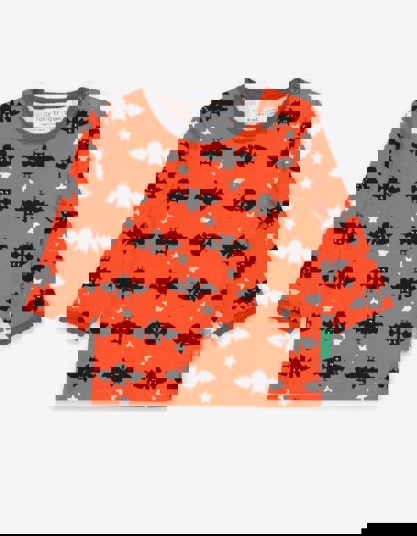 Get your spook on with our bright and batty orange organic T-shirt! Made from super soft organic cotton, this long-sleeved top will keep little ones super cosy, and our smaller sizes have neck poppers so you don’t get in a flap when changing. Looks great with our leggings or joggers. Want to dress up for Halloween and beyond? Check out our full batty organic childrenswear collection online at Toby Tiger.