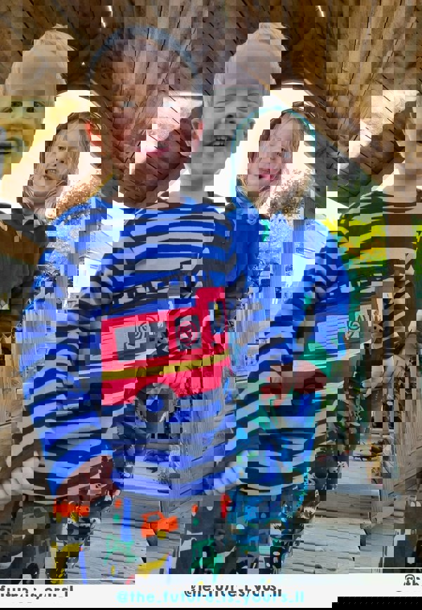 Rev up your little one's style with our Organic Blue Fire Engine T-Shirt. Made from organic cotton, this long-sleeved t-shirt features a blue and grey striped design and a red fire engine applique with a cool fireman at the wheel. Included an interactive lift-the-flap detail which shows you the inside of the fire engine. Perfect for playful days and eco-conscious parents!