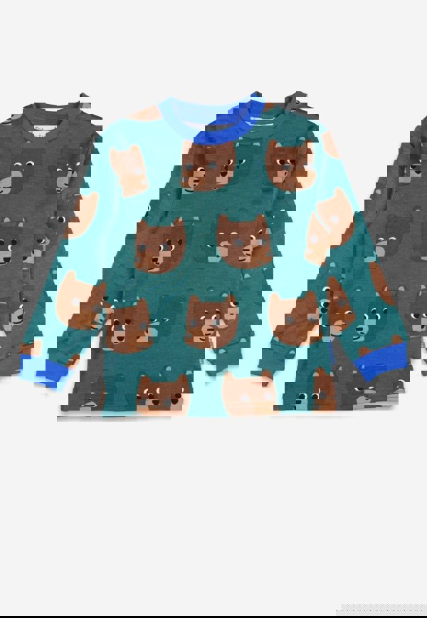 Snuggle up for a bear-y cosy night with our Organic Brown Bear Print Pyjamas! Crafted from soft, breathable organic cotton, these teal pyjamas feature an adorable brown bear face print that adds a touch of playful charm to bedtime.