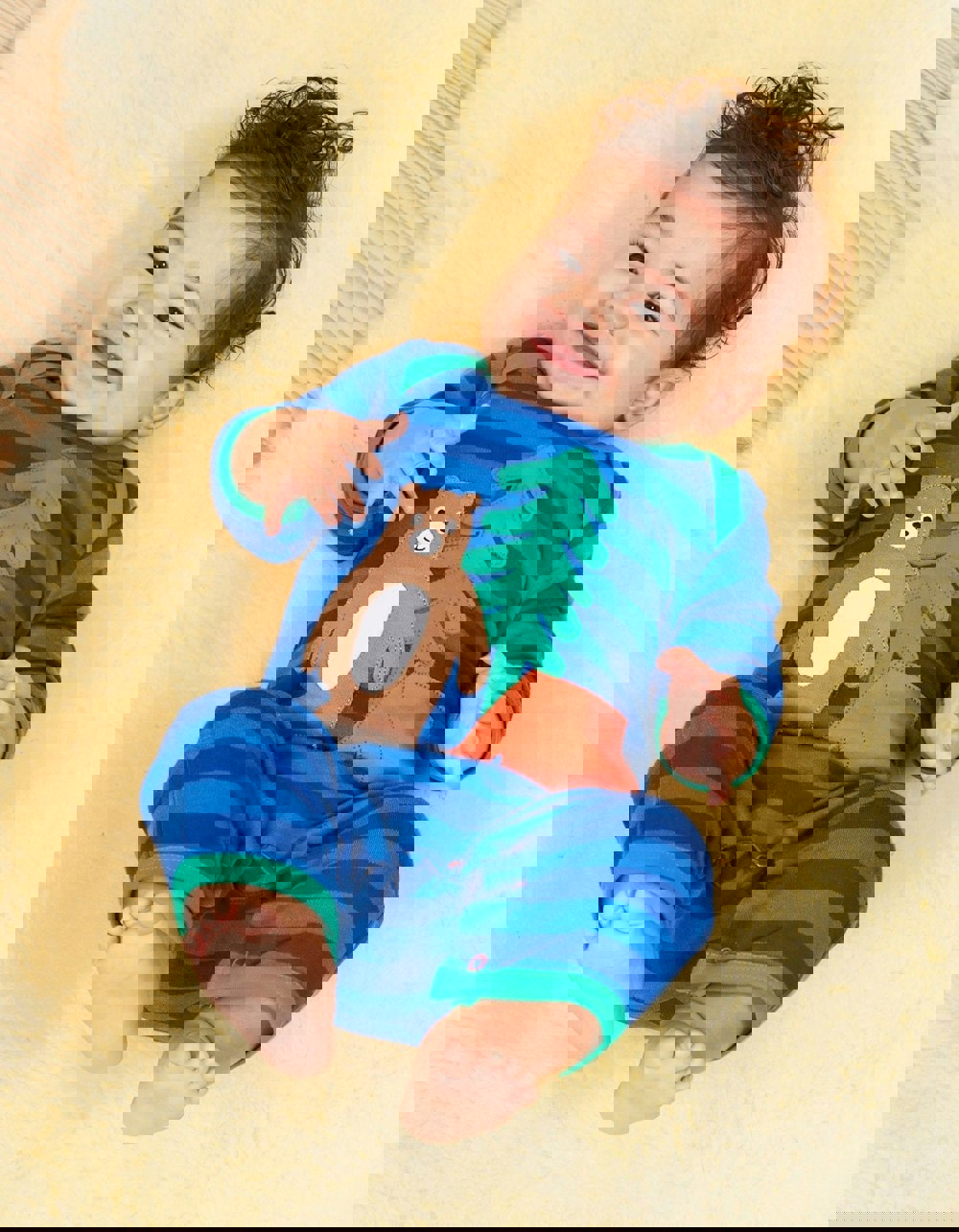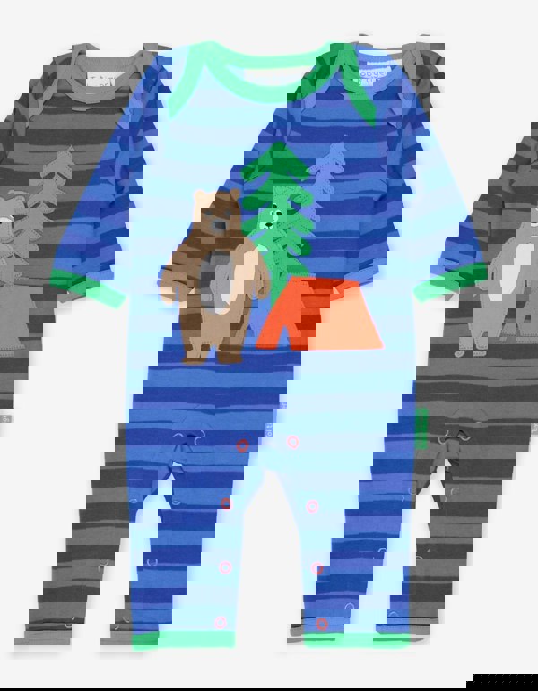 There's more than the bear necessities with this fun applique sleepsuit! Made from super soft 100% organic cotton and featuring our applique bear in the woods, we've designed it with an envelope neckline and leg poppers for fuss-free changing. This sleepsuit is all about comfort and convenience. Made with 100% organic cotton, it's soft and gentle on your little one's skin. Plus, the leg poppers and envelope neckline make changing easy peasy. And who can resist our adorable bear applique? It's a must-have for any camping adventure! Love this design? Check out the rest of our Camping collection for matching muslin and baby basics.