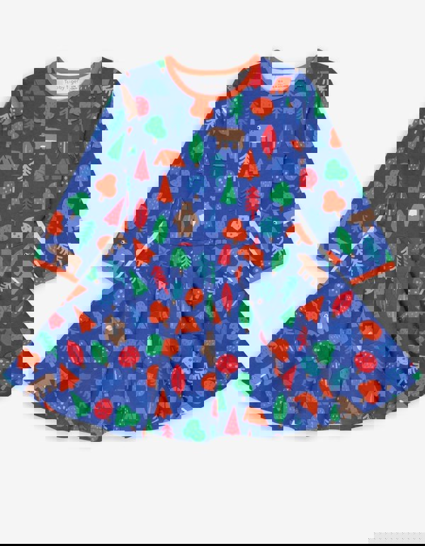 Swirl and twirl in this fab and floaty camping bear organic T-shirt dress. Made from super soft 100% certified organic cotton featuring long sleeves, it'll keep little ones warm all winter. We've added neck poppers on sizes 6-12 months and 1-2 years for fuss-free changing. Are you a fan of our friendly pal? Check out our entire organic childrenswear camping bear collection online at Toby Tiger.