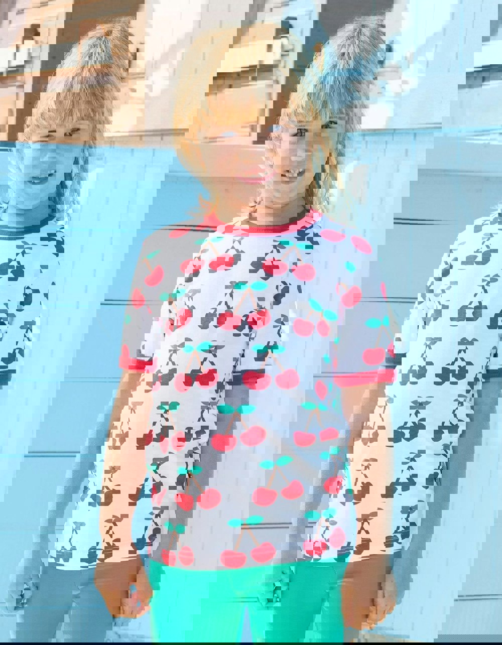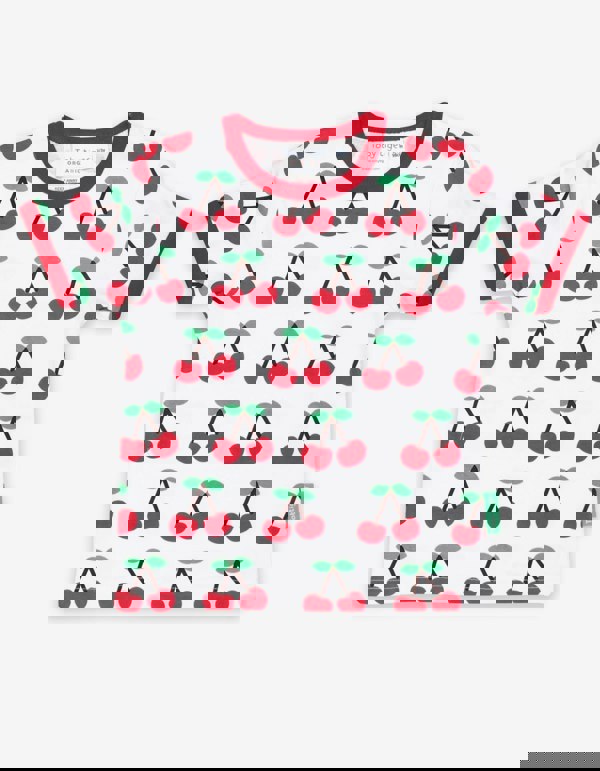 It's cherry season! We know how hard it is to stop once you taste these juicy fruits, hence our all-over print organic cotton T-shirt. Made from 100 GOTS-certified organic cotton, the smaller sizes have poppers on the neck to make changing that little bit easier. Lush!