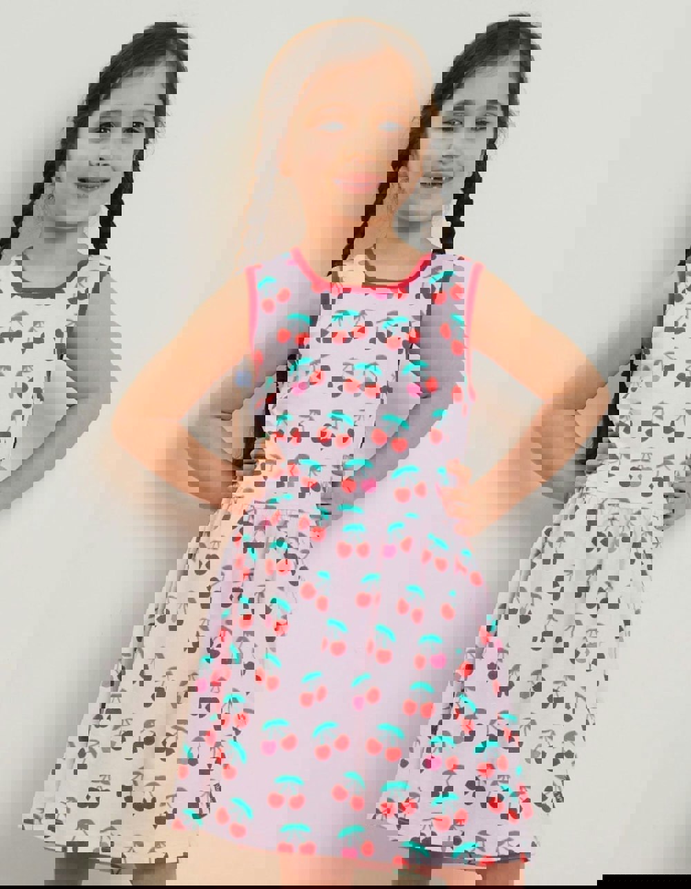 Let's all cheer for cherries! Our organic cotton kids summer dress features a crop of summer's delicious fruit, while the vest top style and soft organic cotton keep little ones cool all summer long. If you love summery prints, stock up to last for all seasons, including yoga pants and applique T-shirts! Check out our full Fruit collection.