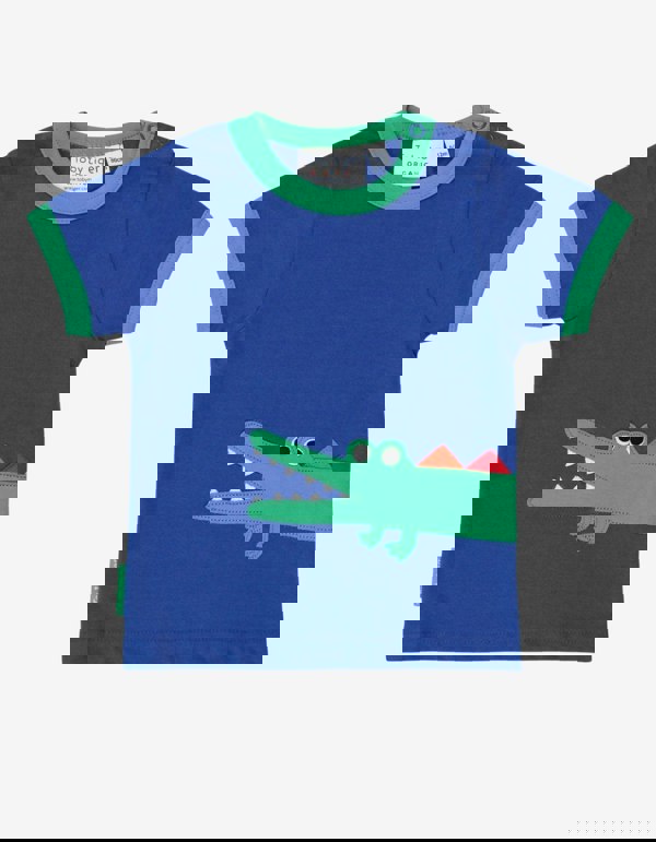 Snap! Just like his shiny white teeth and colourful rainbow stripes, our wraparound applique croc is one sharp dresser - just like your little one! But, our 100% organic cotton couldn't be any softer and helps keep kids comfy all day long. Looks great teamed with our organic leggings or yoga pant, and our smaller sizes also come with neck poppers for super snappy changing!