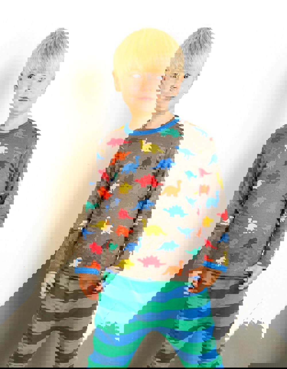 Our colour-block dino friends take on the long-sleeved t-shirt! It's made from our glorious 100% certified organic cotton, feeling super soft on little ones, and our smaller sizes come with neck popper fastenings for easy peasy changing. Take look at more of our dino prints, there's something to suit all ages.